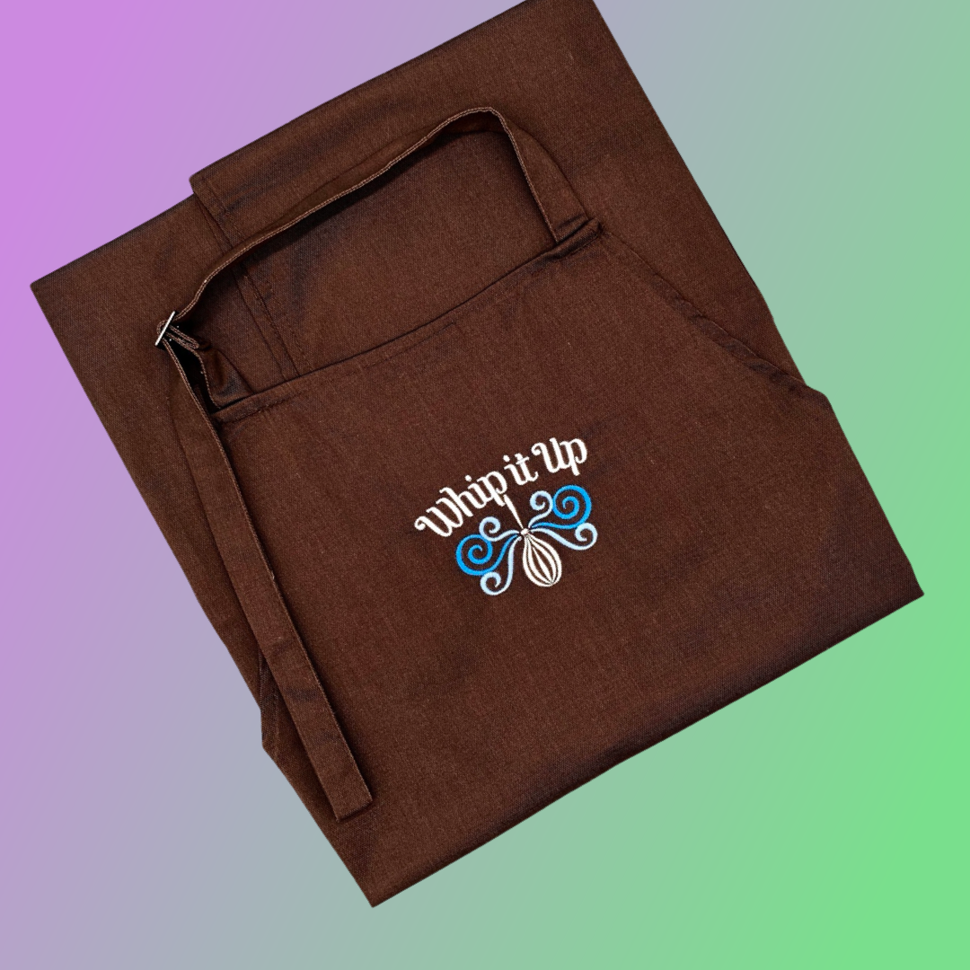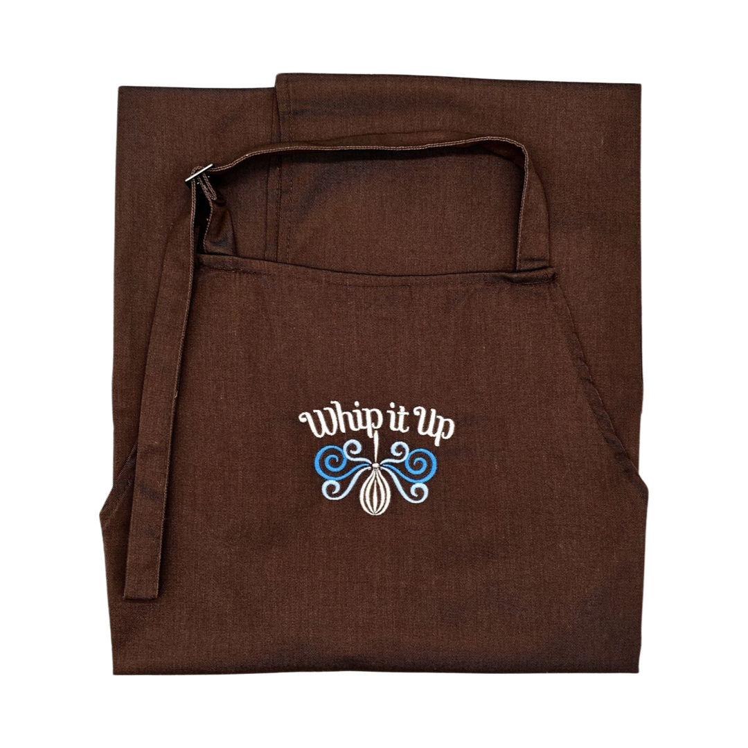 - Custom embroidered with a whisk, swirls, and "Whip It Up"