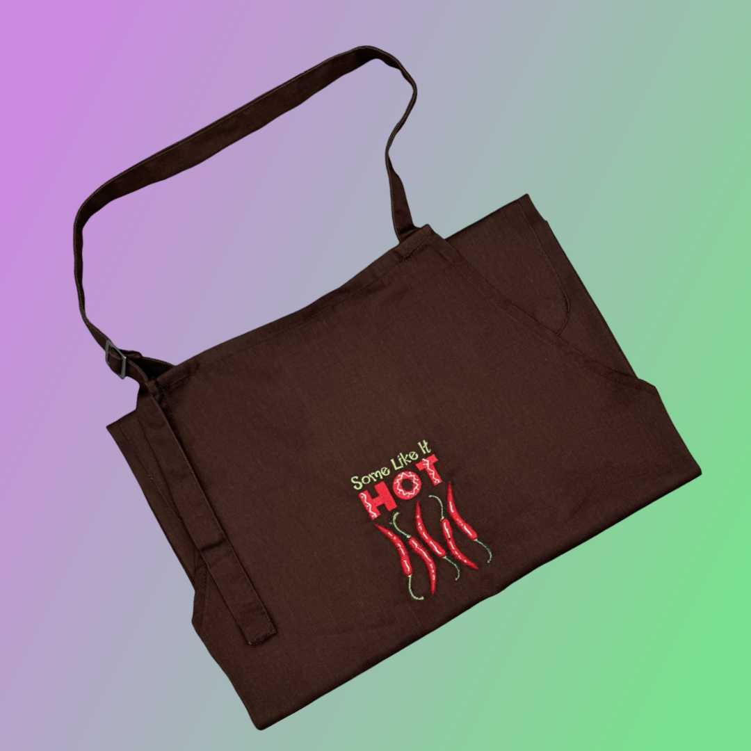 - Custom embroidered with a chili peppers and "Some Like It Hot"