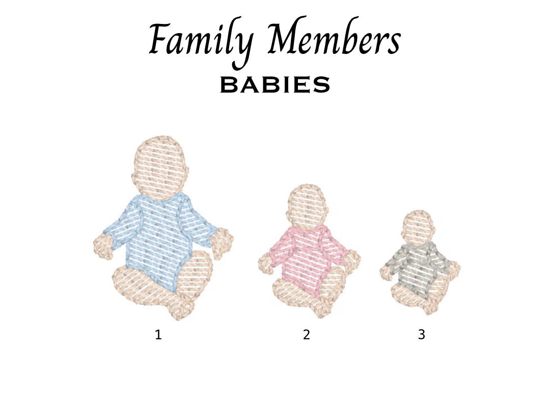 Following receipt of your order, you will be contacted with further instructions to supply details on each family member to be embroidered. You will be given the opportunity to review the design prior to it being embroidered and have the opportunity to request edits (up to two times at no additional charge).