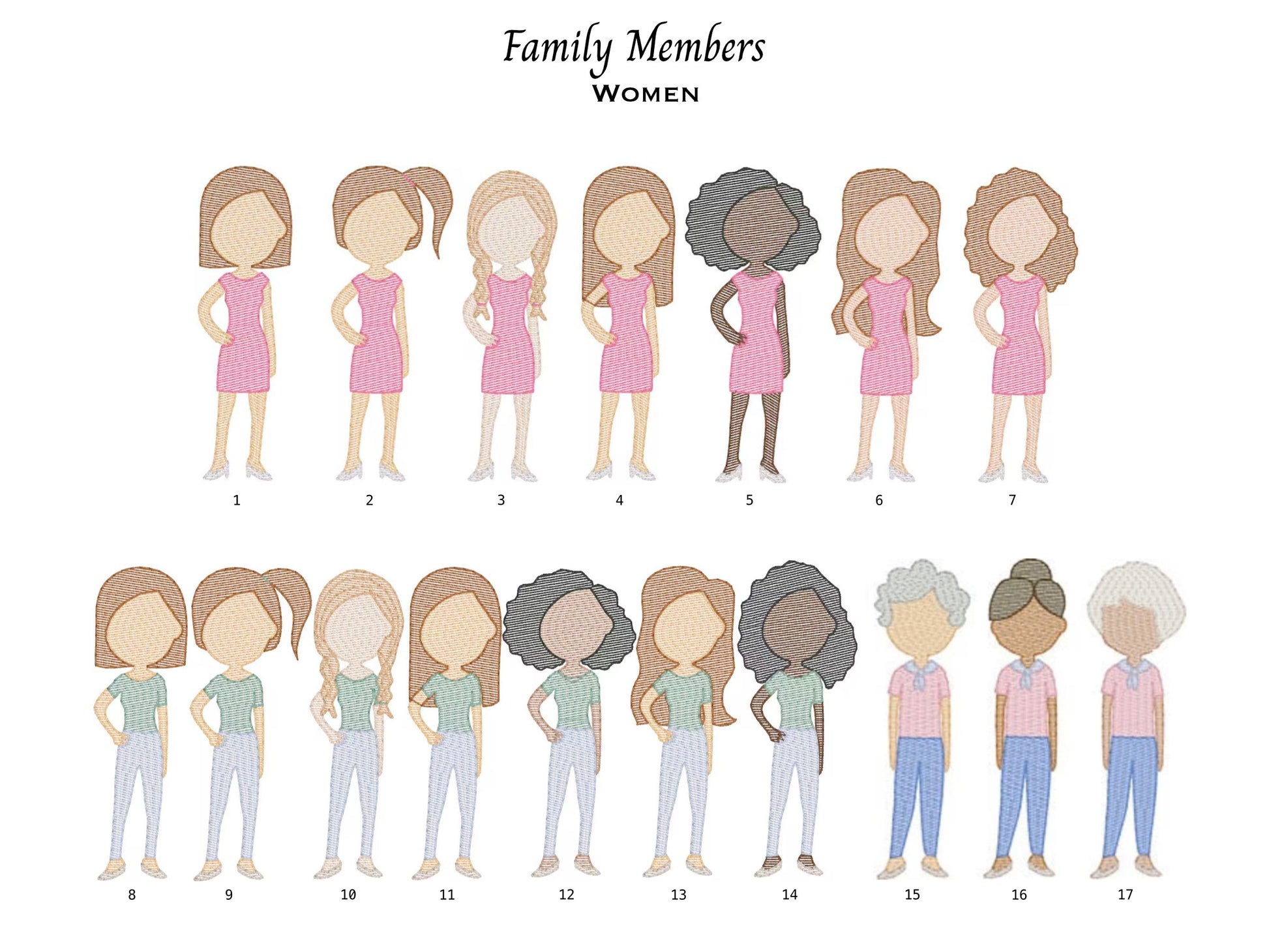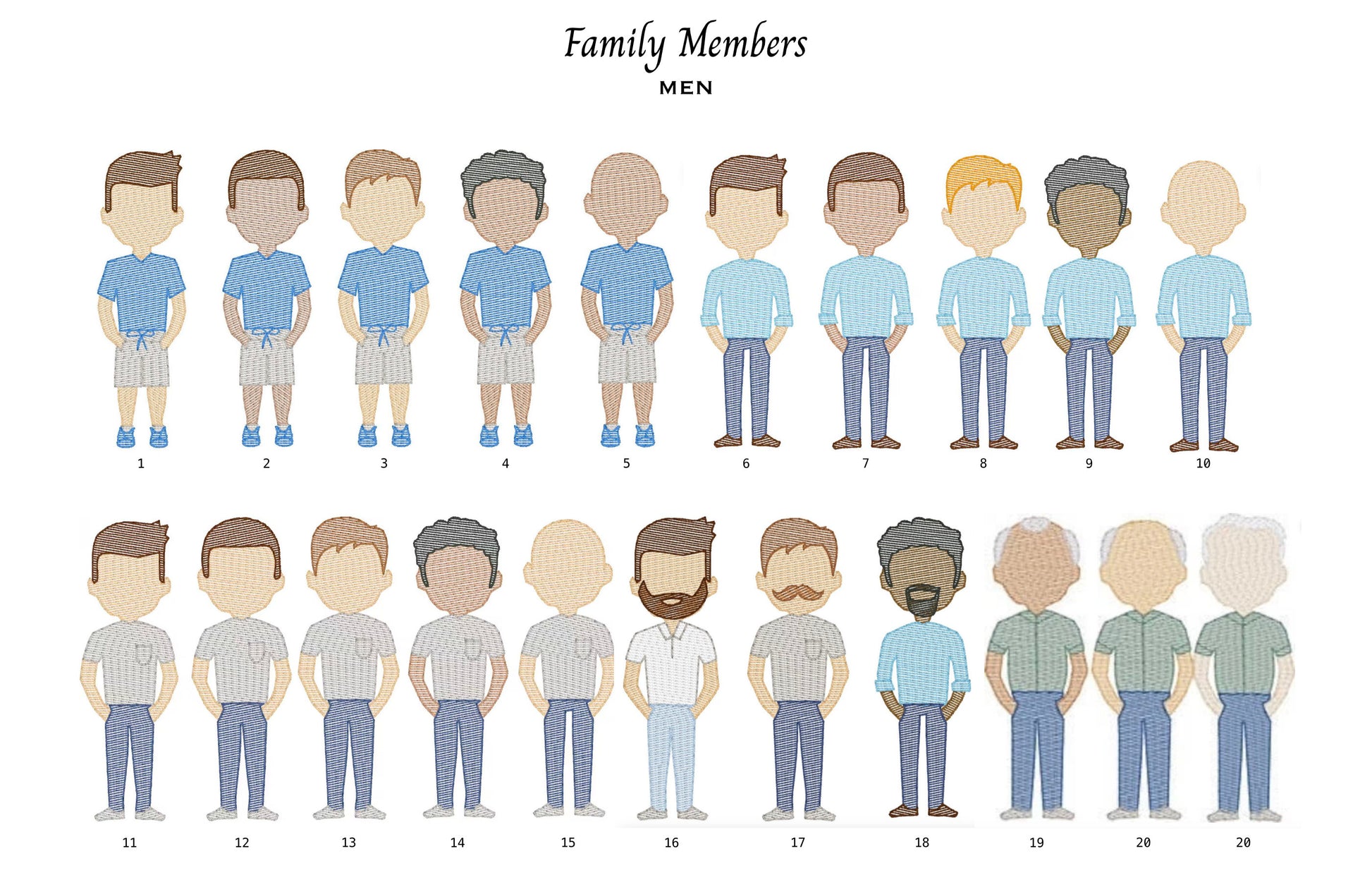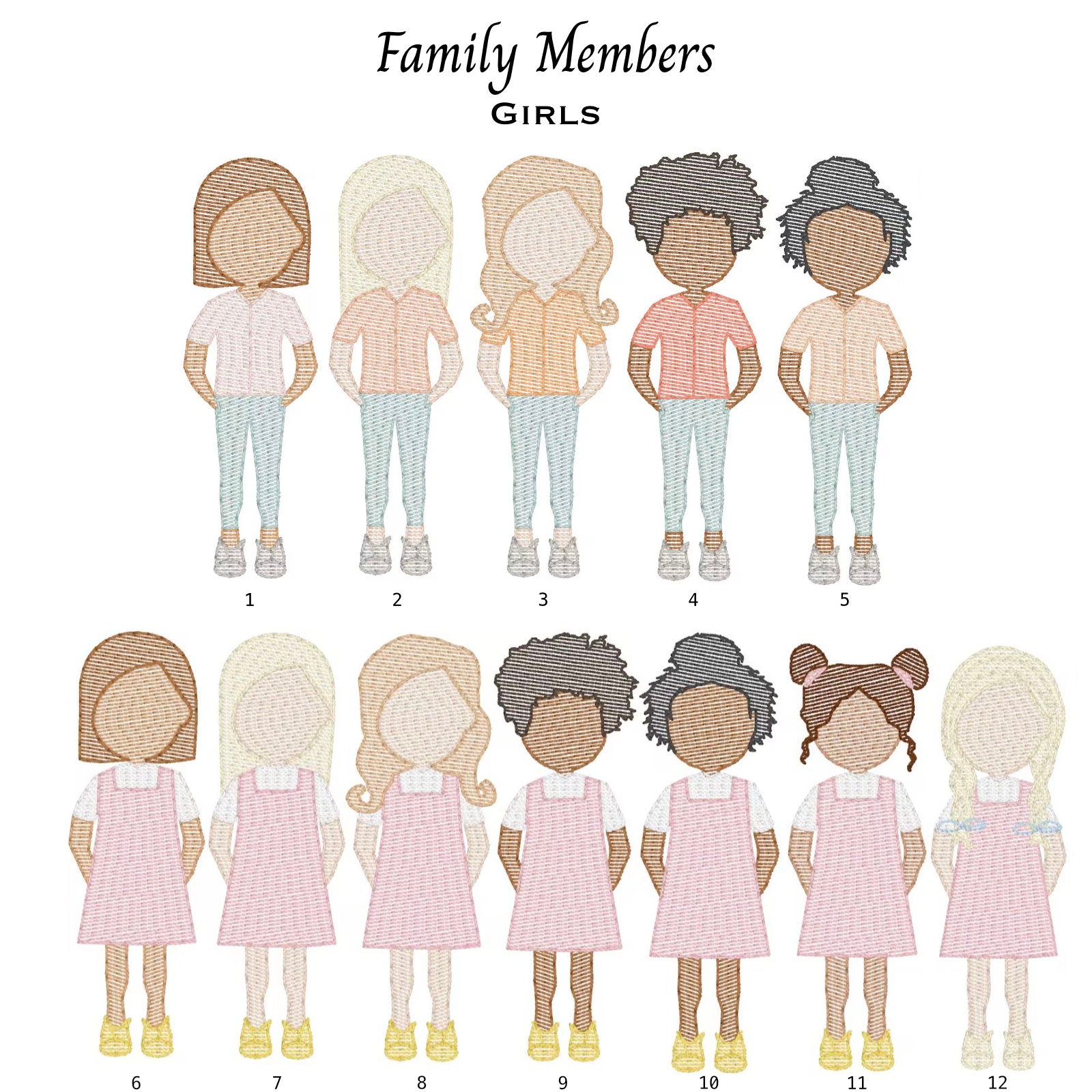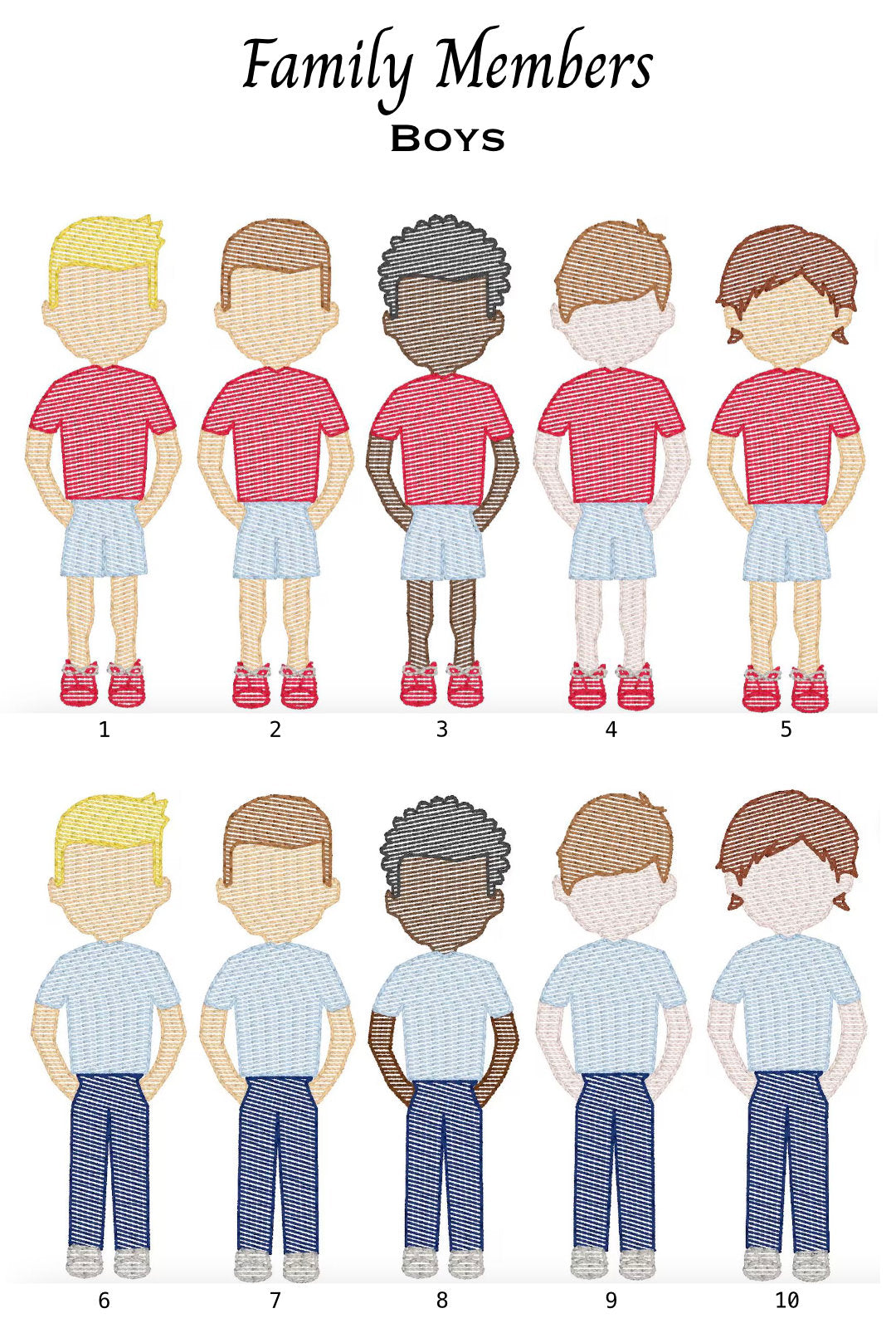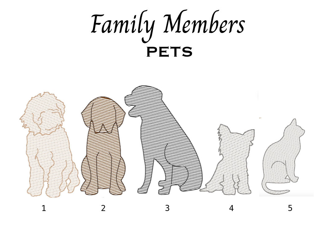 - Custom embroidered with your choice of people and/or pets, along with a name for each (up to 6) [If additional family members are required, please contact us to discuss options.]