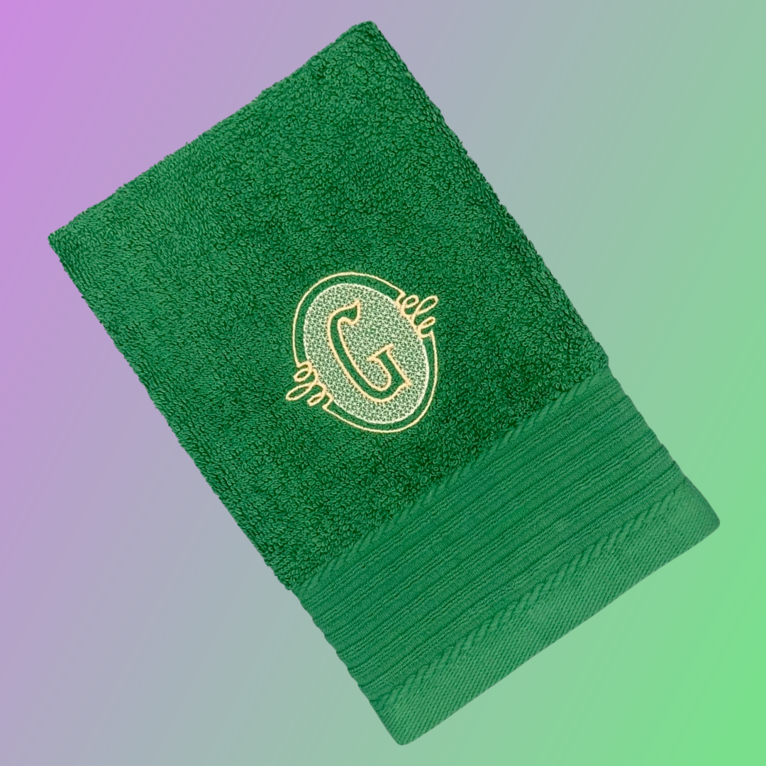 - Custom embroidered with a single-letter monogram near the bottom
