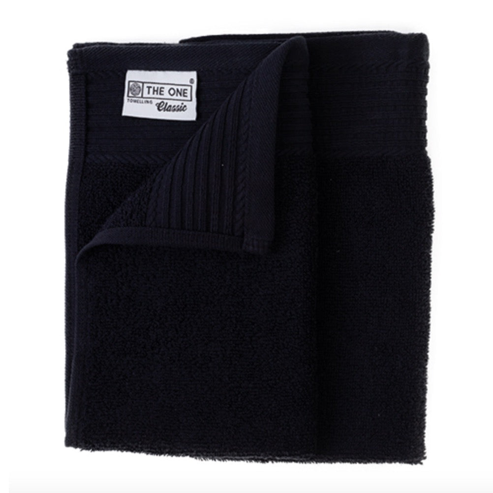 - Guest hand towel available in white, black, blue, and green