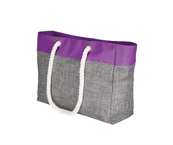 - 600D polyester in mottled grey melange with neon lilac stripe