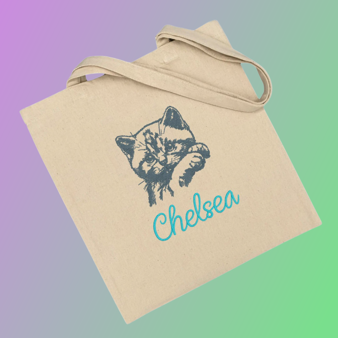 - Custom embroidered with a choice of cat breed and name (up to 12 characters)